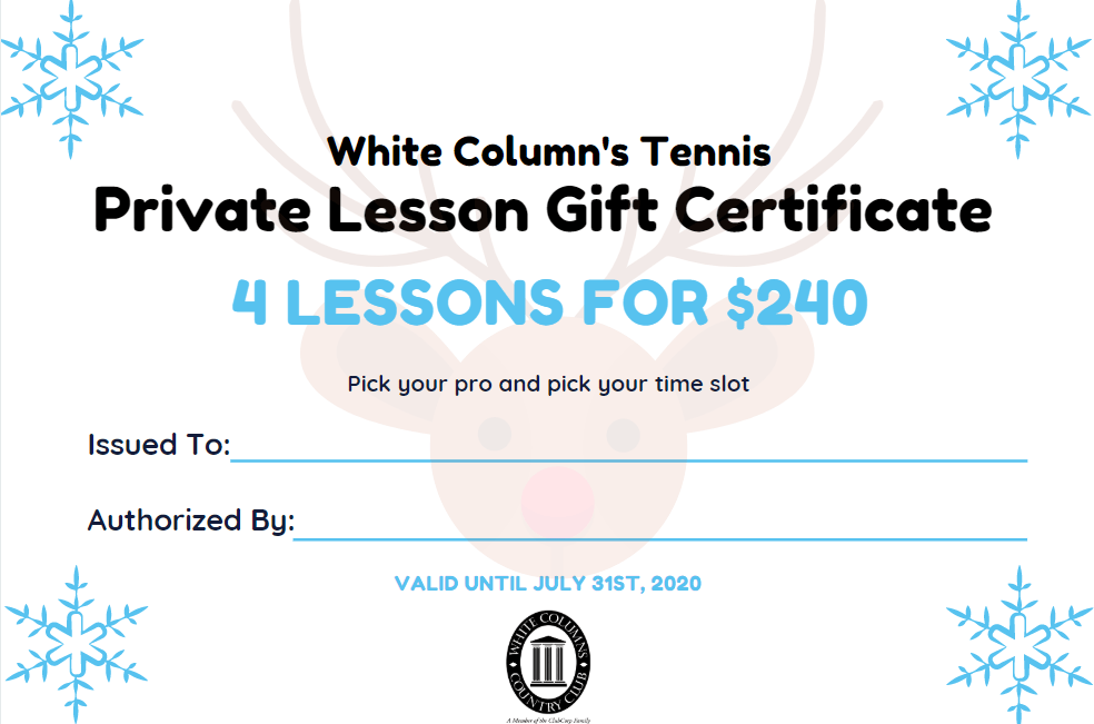 Holiday Gift Certificates are a great stocking stuffer for the Tennis Nut in your family. Contact RJ at robert.dunkle@clubcorp.com to order yours today!